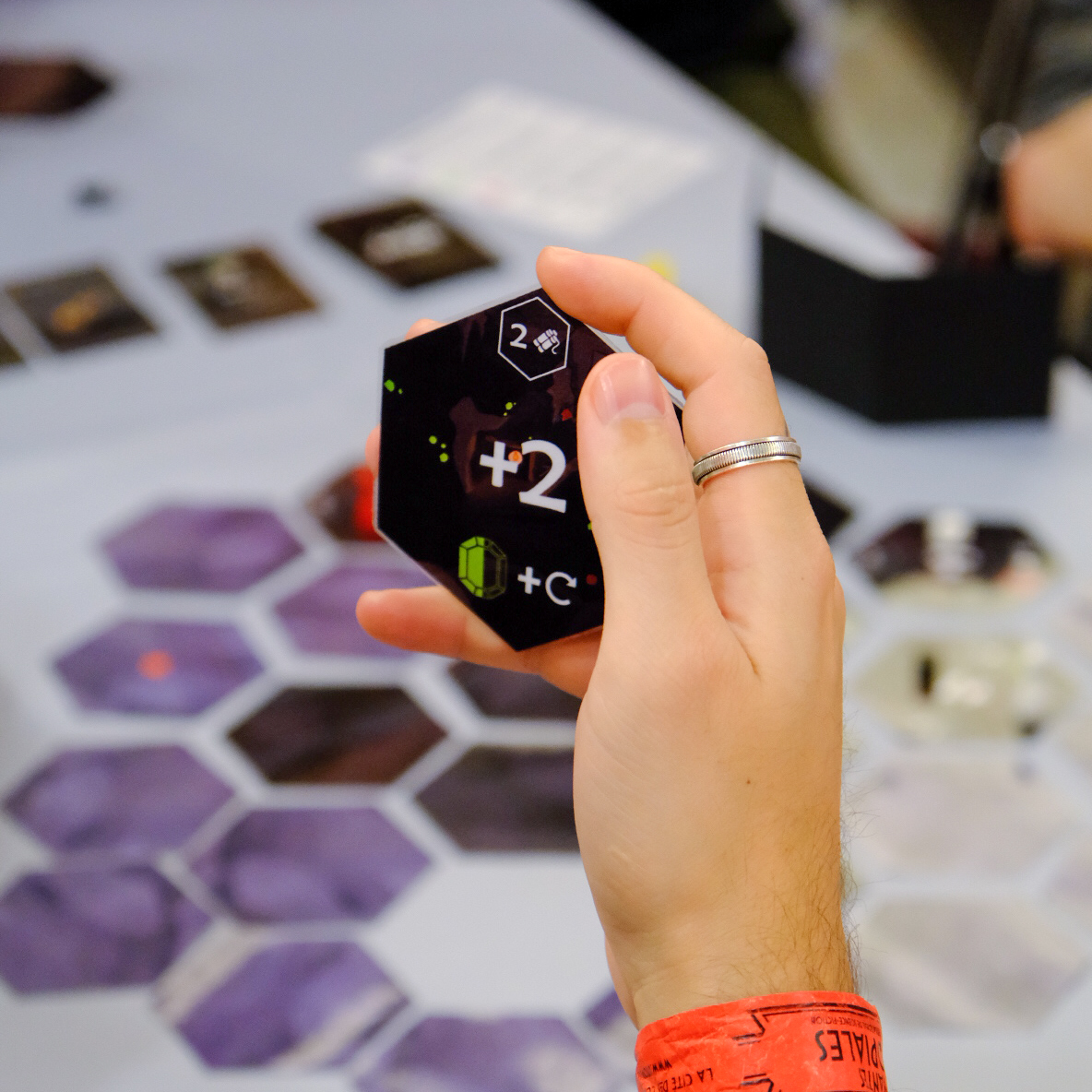 Les confrontations directes à coups de dés vous permettent de conquérir les tuiles adverses.